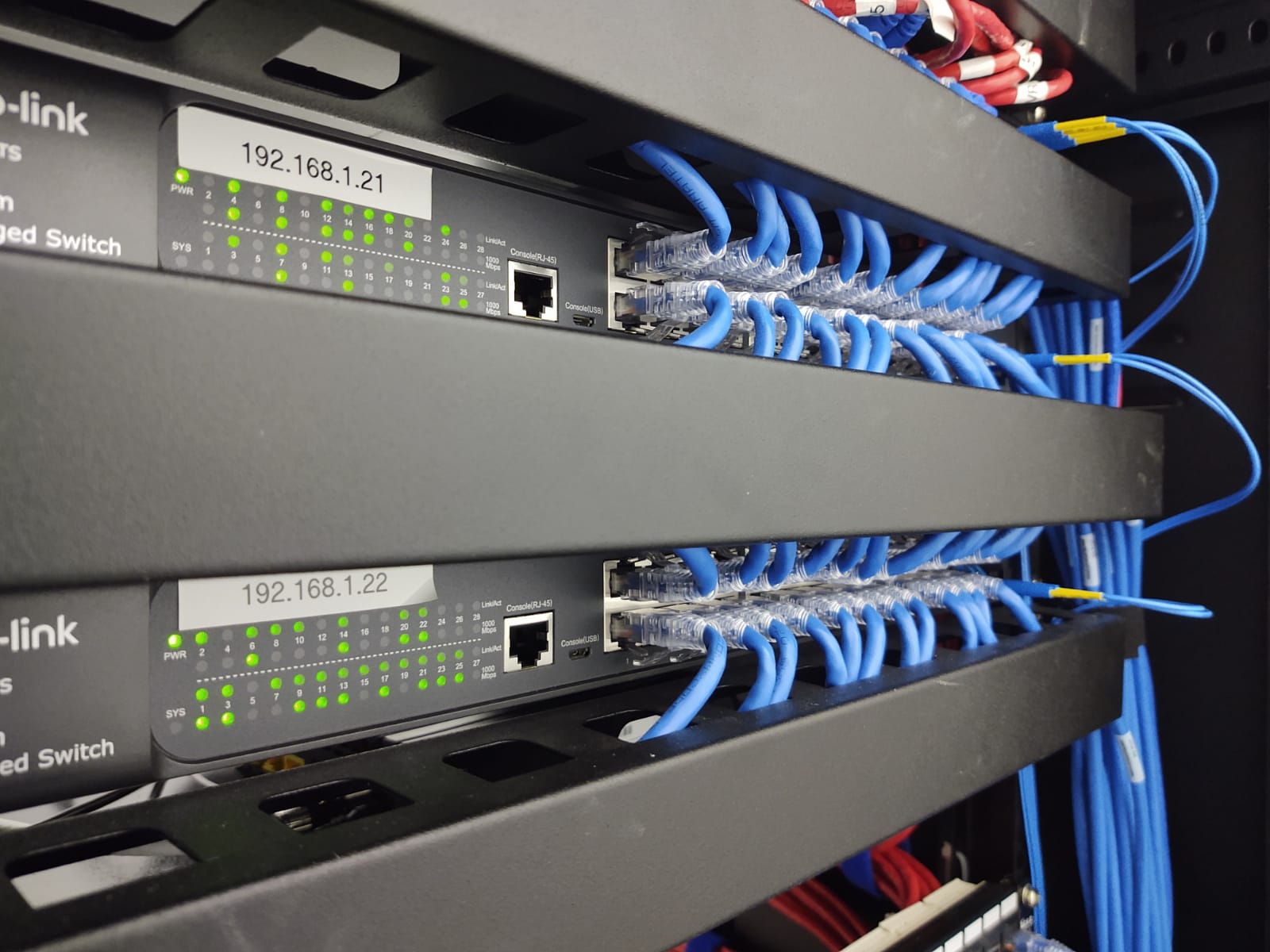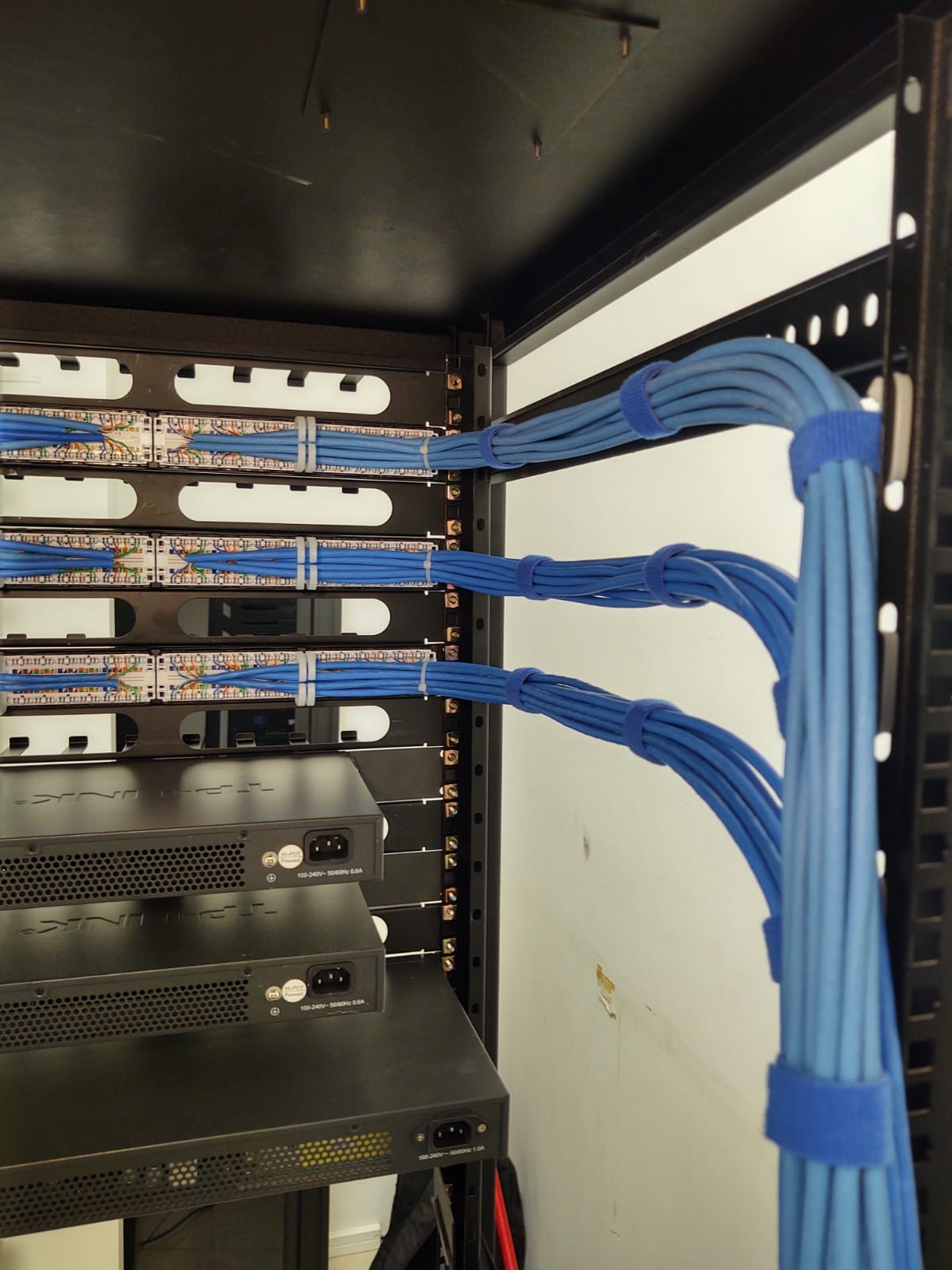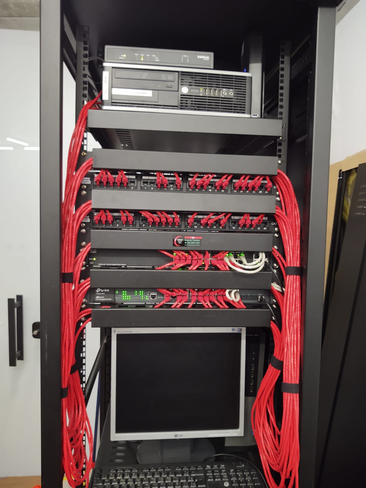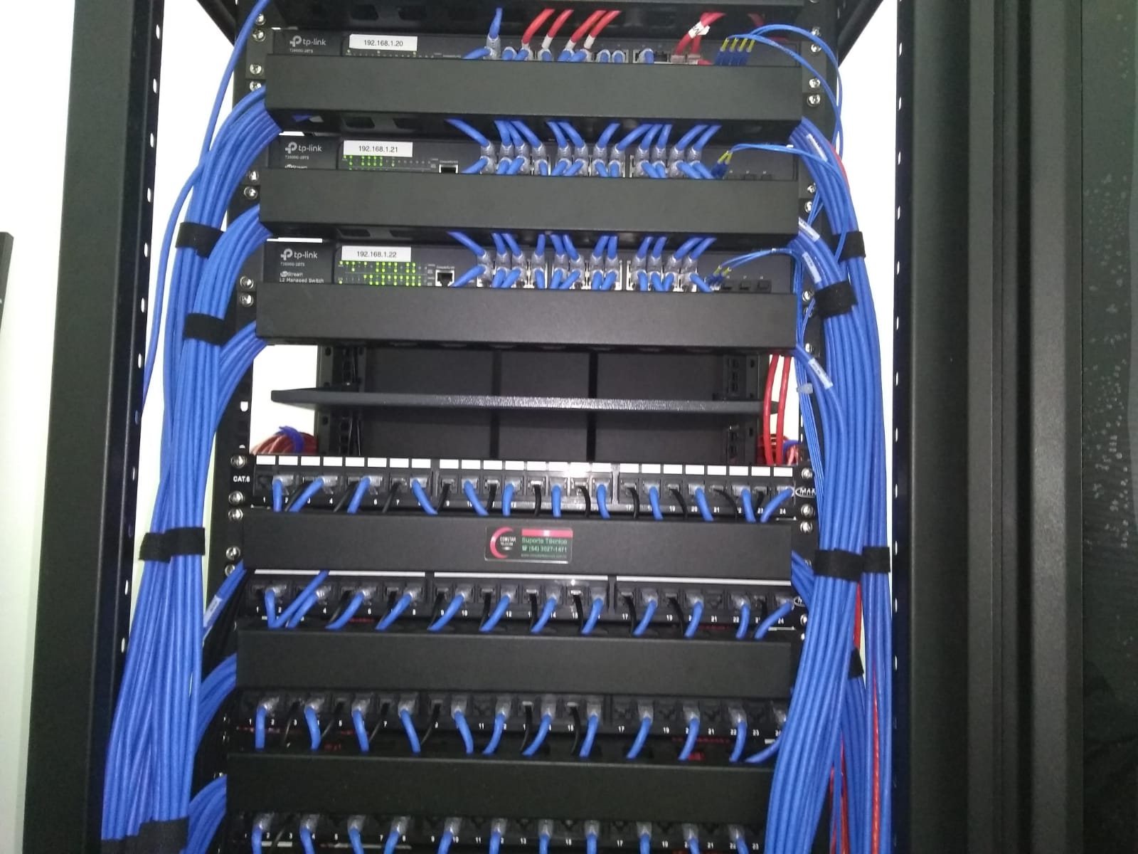 - Fornecimento de racks, switches, bandejas, guia de cabos, régua para rack 19”, patch panel, patch voice, kit ventilação, kit rodízio, patch cord.